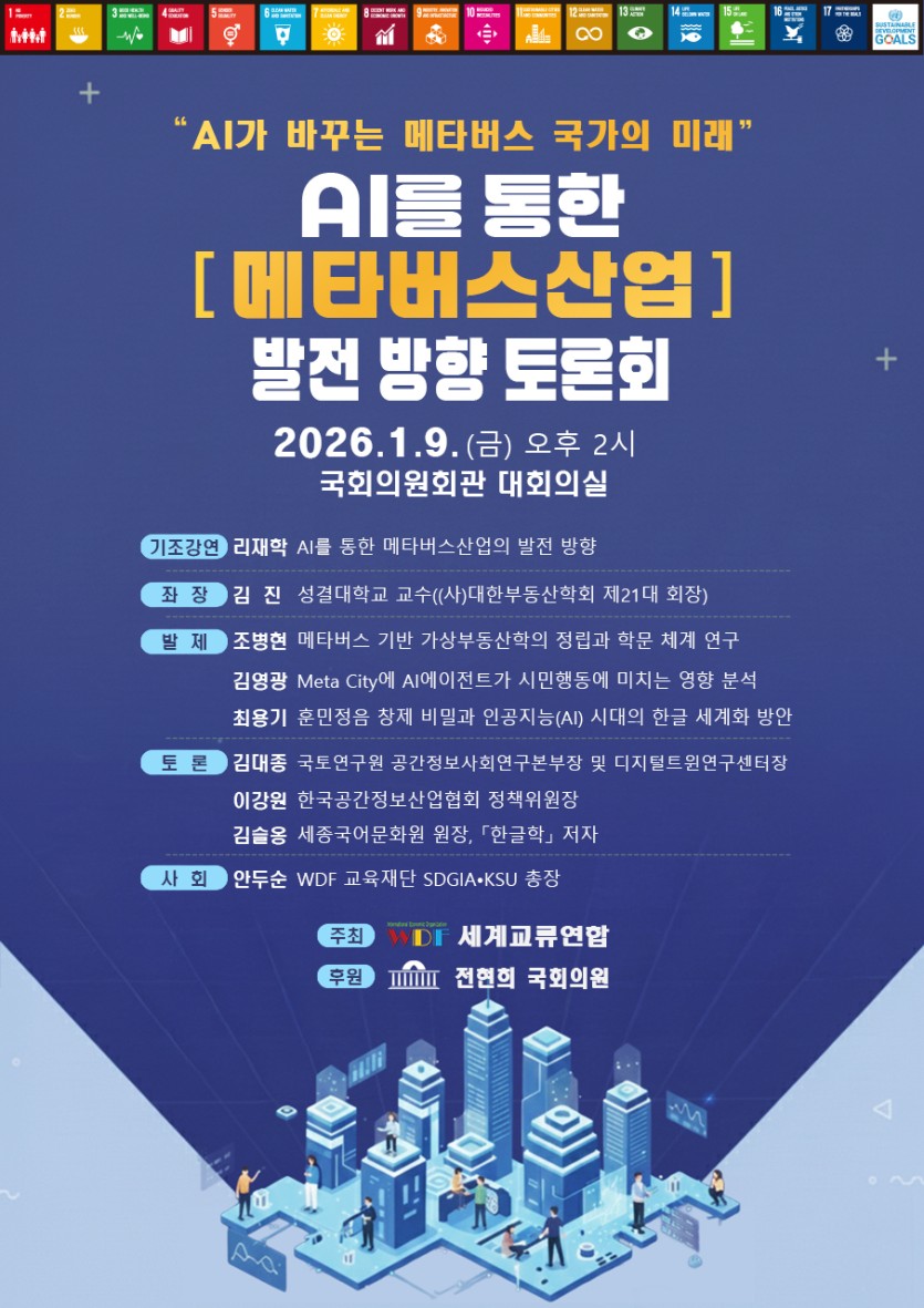- 이전글AI 바꾸는 메타버스 국가의 미래 토론회 26.01.10
